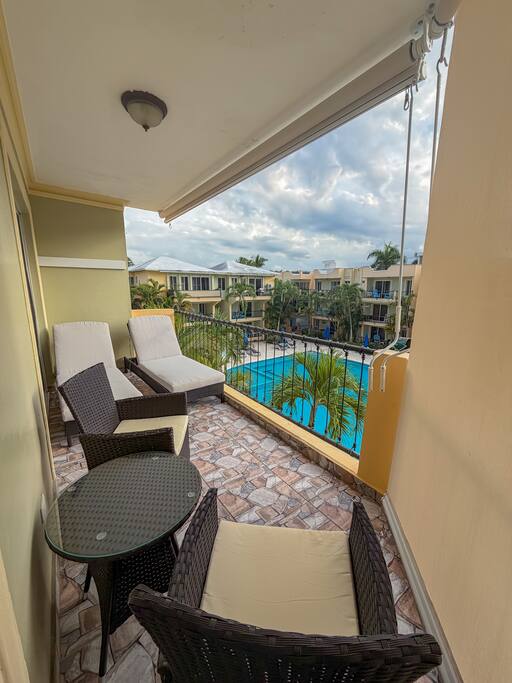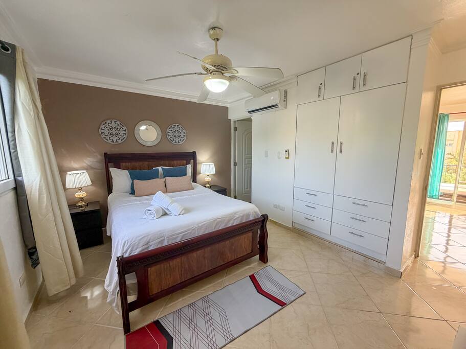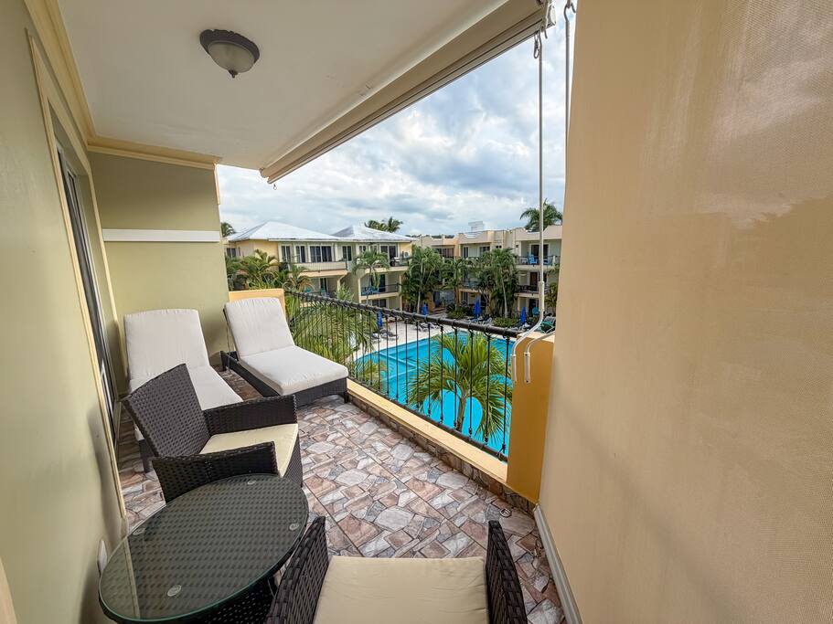 1BR APT fully equipped and newly furnished. Located at the center of Sosua and just a short walk away from the beach, supermarket, nightlife and you do not need a car to enjoy everything Sosua has to offer, but yet quiet and secure. Nice view over the pool area, one of the best locations within the project - Smoking is allowed on balcony. - Free private parking is available on site. - 24/7 Security - Backup generator - Garbage disposal - Poolside BBQ ELECTRICITY IS NOT INCLUDED