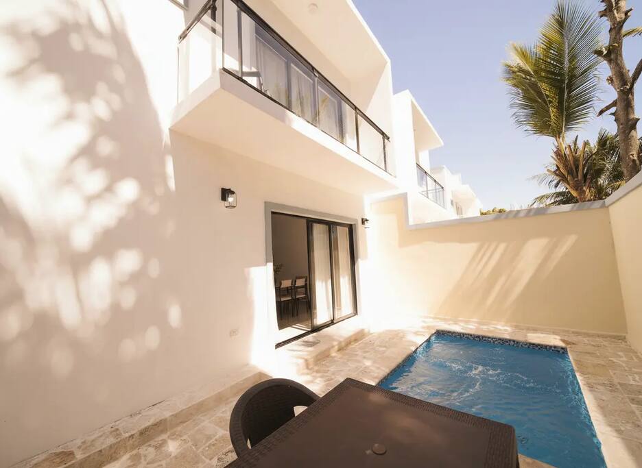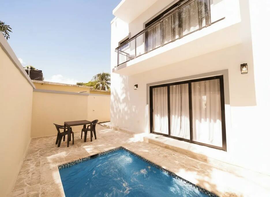 Cozy 2-bedroom, 2-bath villa in a quiet Sosúa community. Enjoy a fully equipped kitchen, bright living area with Smart TV, and air-conditioned bedrooms. Relax on the private patio with plunge pool, perfect for sunny days or evenings outdoors. Located close to supermarkets, restaurants, and the beaches of Sosúa and Playa Alicia. Ideal for couples, families, or longer stays.